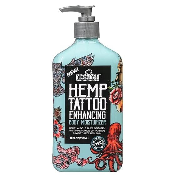 Jun 29 2019 Malibu Tan Hemp Tattoo Enhancing Body Moisturizer 18 fl. This product aids in the healing of your skin after inking and also acts as a moisturizer. Its not as good as the actual Hemp brand lotion but I would say pretty darn close in my opinion this big bottle was under 5 bucks at Wal-Mart.